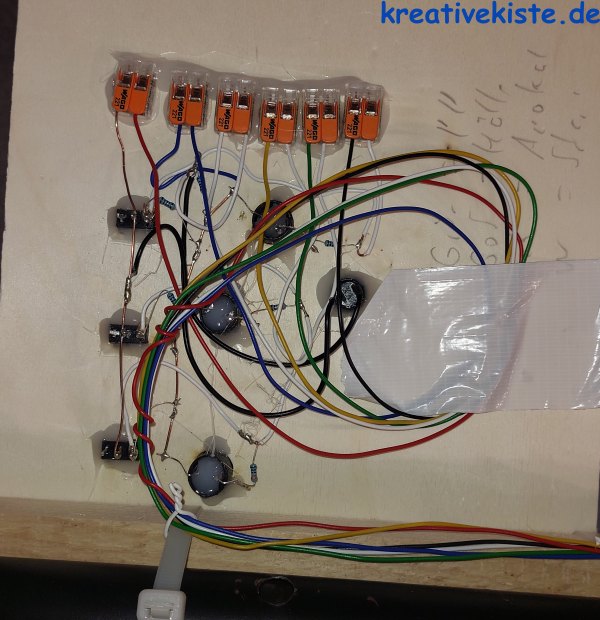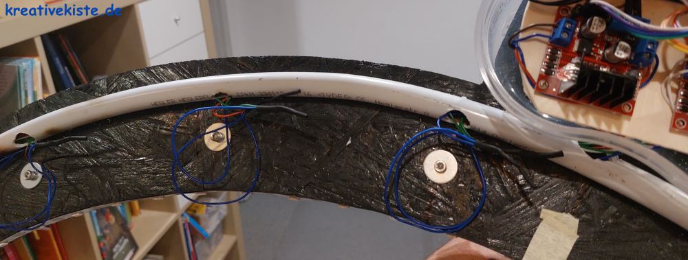 In der Version 1 habe ich die Kabel in einem Rohr verlegt, was zwar zweckmässig aber nicht so hübsch ist.