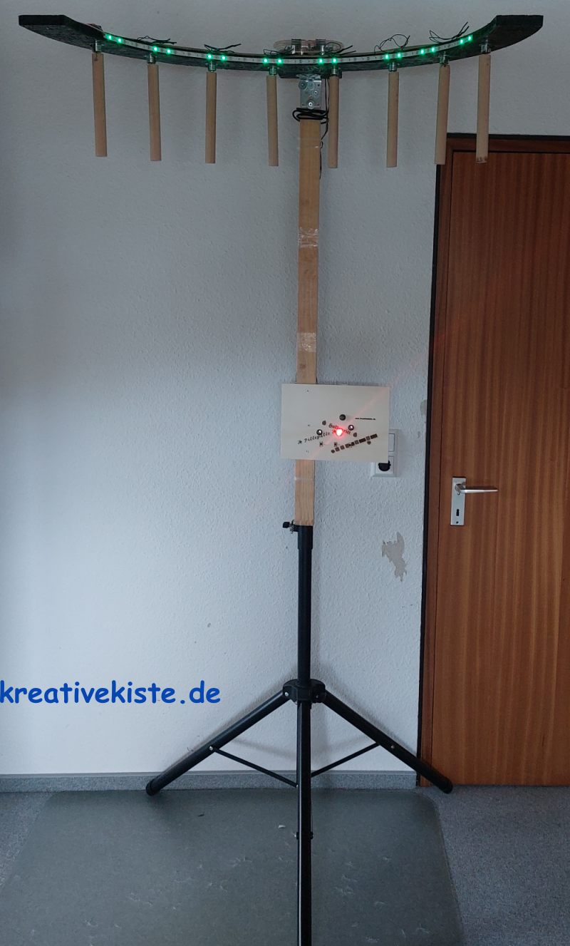 Das Gestell des Spiels besteht aus einem Stativ für Lautsprecher und einem Halbkreis aus OSB Holz.