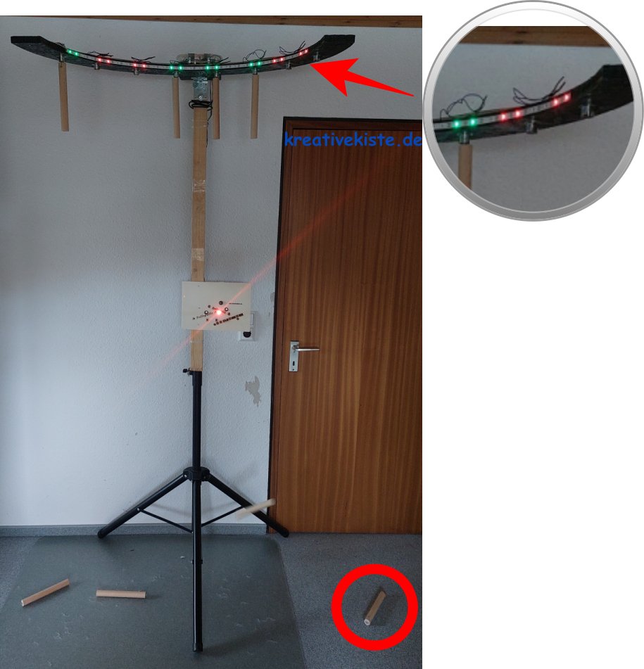 - Sind alle Stäbe "FREI" gehen alle LEDS auf rot