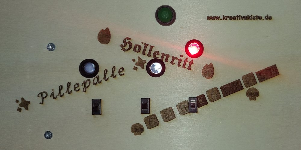 In der Version 1 ist die Schrift beim Lasern nicht ganz so geworden wie gewollt. Immer die LED die an ist, dieser Modi wird gespielt.