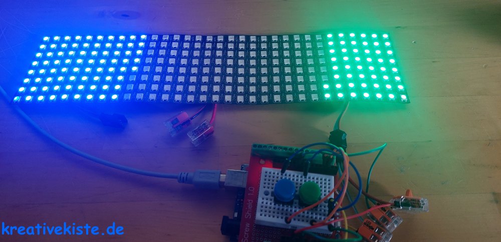 Die Schaltung besteht nur aus einem Arduino, zwei Tastern und einer 255 LED Matrix.