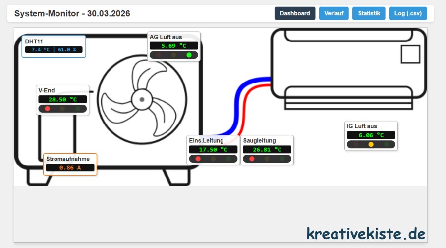 Herauszufinden, wie effizient eine Klimaanlage oder Wärmepumpe wirklich arbeitet, ist ohne die richtigen Daten fast unmöglich. Dieser Kältemonitor auf Basis des Arduino UNO R4 WiFi schließt diese Lücke. Das System überwacht nicht nur kritische Temperaturen am Kältekreis, sondern analysiert auch die Stromaufnahme, berechnet den Energieverbrauch in kWh und zählt die Betriebsstunden. Über ein kleines Web-Interface werden Taktungs-Probleme oder Effizienzverluste sofort sichtbar.
