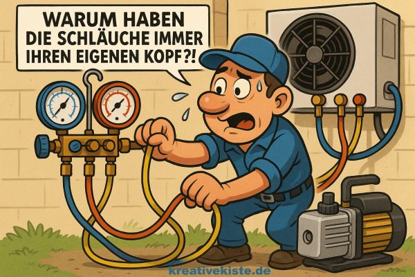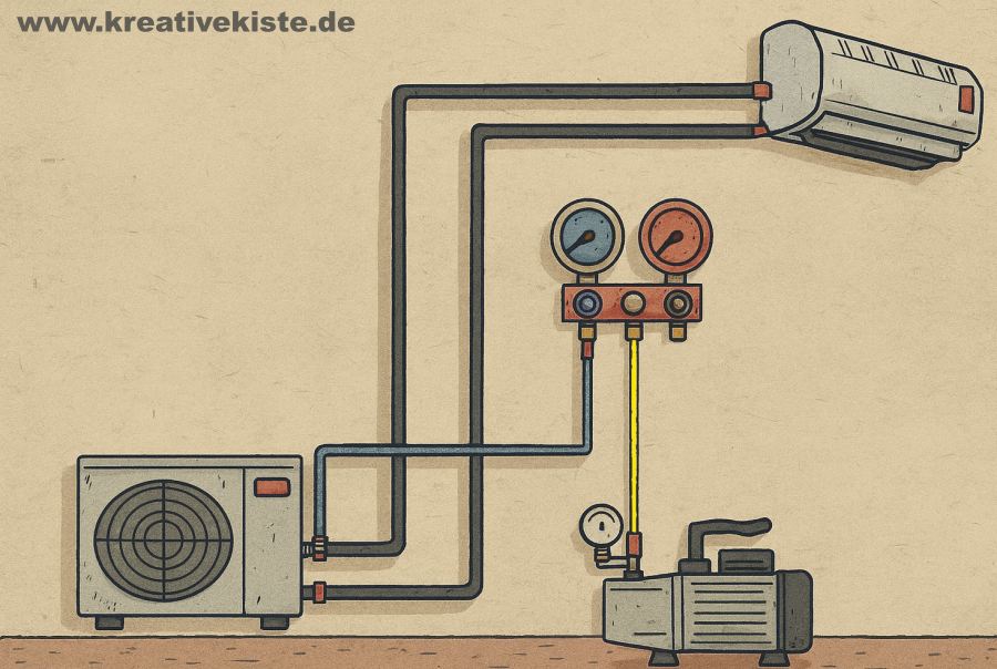 Das Evakuieren einer Klimaanlage ist ein unverzichtbarer Arbeitsschritt, der nicht übersprungen werden darf. Nur so werden Luft und Feuchtigkeit zuverlässig entfernt, die Anlage auf Dichtheit geprüft und ein störungsfreier Betrieb sichergestellt.🚫 In vielen Ländern – auch innerhalb der EU – ist das Arbeiten mit Kältemitteln gesetzlich reglementiert und ausschließlich zertifiziertem Fachpersonal vorbehalten ❄️. Wer eine Klimaanlage installiert, reparieren oder warten lässt, sollte daher darauf achten, dass das Evakuieren / Vakuumieren ordnungsgemäß durchgeführt wird – es entscheidet über Effizienz, Sicherheit und Lebensdauer des Systems.