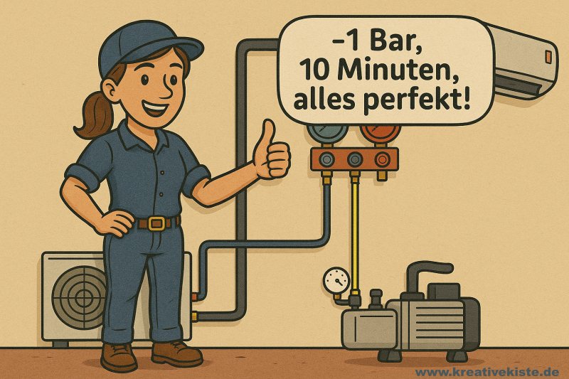 - Zu kurze Evakuierungszeit: Nur wenige Minuten reichen nicht, um Feuchtigkeit und Fremdgase zu entfernen.