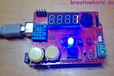 - Hygrometer: Anzeige der Luftfeuchtigkeit (DHT11) mit Schimmel-Warnung (LED).