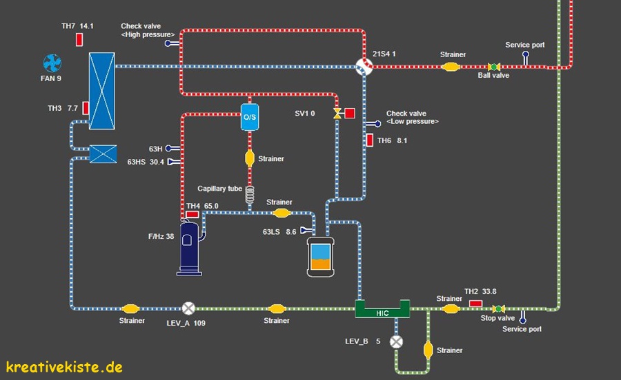 - Wenn du mehr über das 4-Wege- Ventile wissen willst, kannst du hier weiterlesen: https://www.kreativekiste.de/das-4-wege-ventil-in-klimaanlagen-und-waermepumpen
