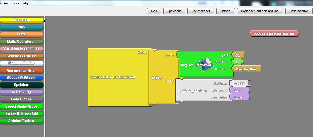 Interrupt PIN über Infrarot auslösen mit Ardublock