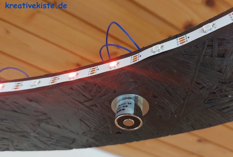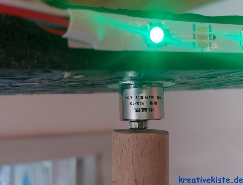 Die Magnete sind von oben durch das Holz geschraubt und zusätzlich von unten und oben mit einer Unterlegscheibe gesichert.