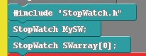 Die stopwatch.h ist eine Header-Datei (meist für C++ oder Arduino-Umgebungen), die dir eine einfache „Stoppuhr-Klasse“ zur Verfügung stellt. Sie abstrahiert die Arbeit mit System Timern, damit du nicht manuell mit Zeitstempeln rechnen musst. Dabei verwendet die stopwatch.h den millis eigene Zähler des Arduino. Mit Ardublock müssen wir aber die Funktion "code einfügen" verwenden.