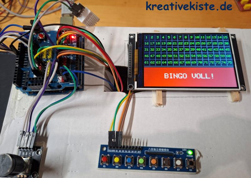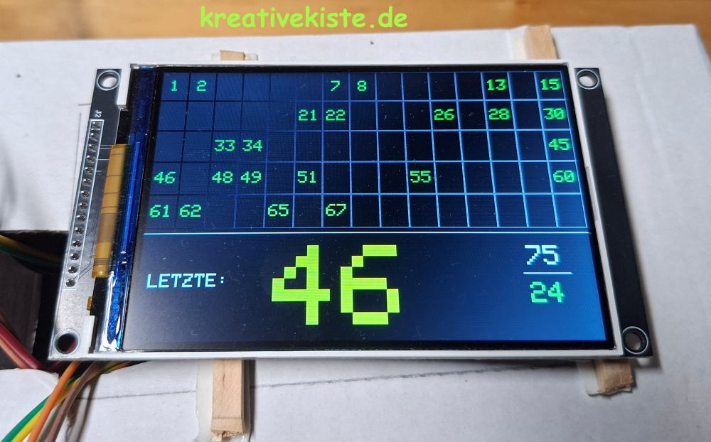 Bingo ist der Inbegriff von Spannung und Gemeinschaft. Doch wer kennt es nicht: Eine Kugel rollt unters Sofa oder man vergisst, welche Zahlen bereits gezogen wurden. Dieses Arduino-basiertes Bingo-System löst diese Probleme elegant. Auf einem hochauflösenden 4" TFT-Display (ILI9486) behältst du immer den Überblick über alle 75 Zahlen. Dank intelligenter Programmierung ist jede Ziehung absolut zufällig und jede Zahl kommt garantiert nur einmal vor.