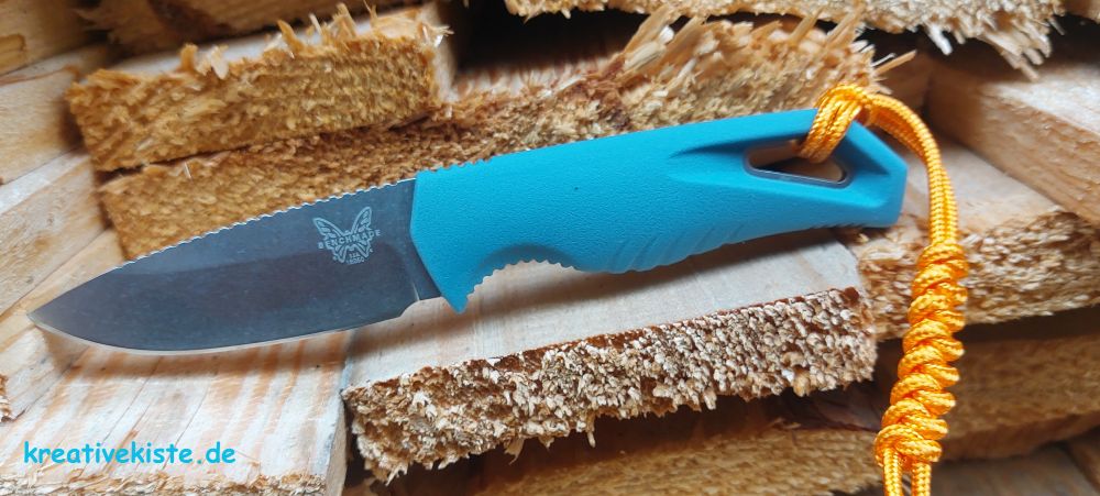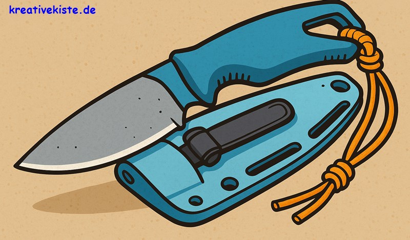 - Grifffarbe Hellblau mit oranger Paracord-Schlaufe