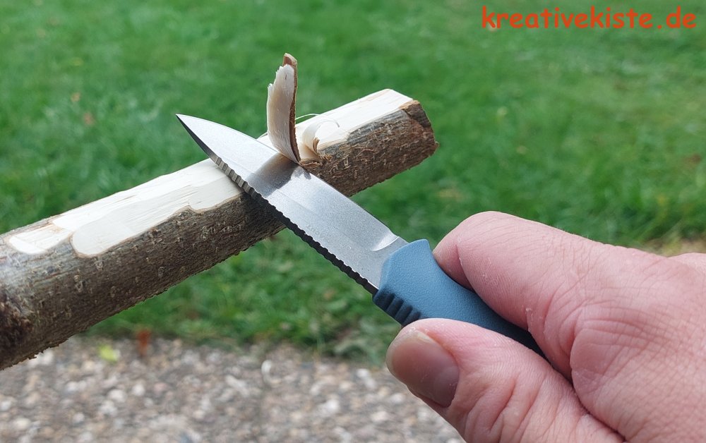Die Klinge war ab Werk gut geschärft. Papier, Karton, Seil oder Holz lassen sich problemlos schneiden. Beim Schnitzen oder Essen-Zubereiten zeigt sich, dass die feste Bauweise Vorteile hat: Die Klinge sitzt bombenfest und überträgt Kraft direkt. Für feine Arbeiten oder zum Brotzeitmachen im Freien ist es ideal. Selbst getrocknetes Holz lässt sich Problemlos schnitzen.