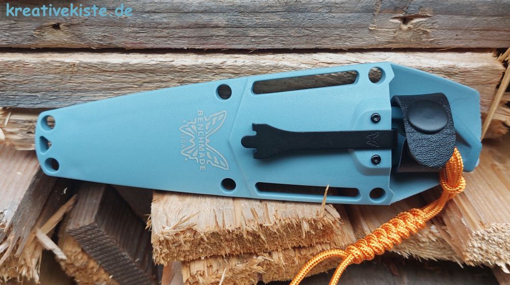 Die Stonewash-Oberfläche der Klinge wirkt hochwertig und kaschiert Gebrauchsspuren gut. Ob es sich tatsächlich um echten CPM Magnacut-Stahl handelt, bleibt fraglich – in dieser Preisklasse eher unwahrscheinlich. Dennoch zeigt die Klinge eine ordentliche Schärfe, ist rostbeständig und leicht nachzuschärfen. Wobei die Kling, "nach oben hin" minimal dünner sein könnte. Die Einkerbung am Griff ist zu "spitz". Nachdem ich mit einer Halbrundfreile zwei mal drüber bin, ist es jetzt aber in Ordnung. Besonders überrascht bin ich von der Scheide. Der Verschluss ist hochwertig und verschließt fest und schließt sich mit einem lauten "KLACK". Zudem fühlt sich die Scheide kein bisschen billig an, sondern sehr hochwertig und stabil.