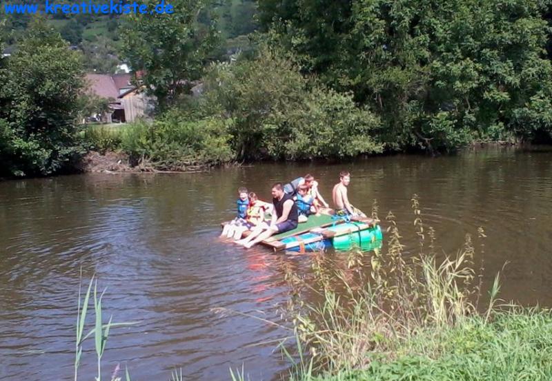 Ein Floß aus Fässern für eine kleine Flussfahrt. Auch wieder Ideal um die Seile zu durchtrennen, den Kunstrasen für den Boden passend zuzuschneiden und viele andere Kleinigkeiten.