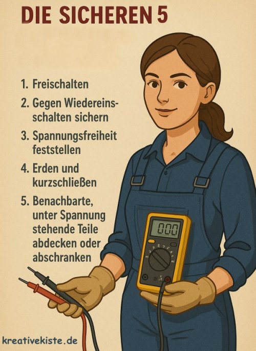 ⚠️ Sicherheit: Die 5 Sicherheitsregeln beim Umgang mit Spannung beachten. Es gelten die EVU und VDE Bestimmungen.