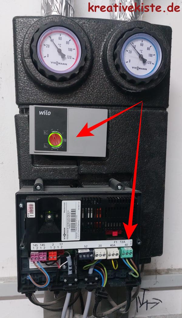 Moderne Heizungen haben meistens so genannte Mischgruppen (Bild unten), hier ist Pumpe, Ventil, Fühler alles kompakt in einem Gerät verbaut. Um die Pumpe zu prüfen musst du also in vielen Fällen nicht die Pumpe aufschrauben, sondern die Regelung. Hier musst du den Anschluss der Pumpe suchen und an diesen Klemmen messen. Nur bei älteren Anlagen findest sich noch die klassische Heizungspumpe (wie im Bild rechts), wo du den Deckel aufmachen und an den Klemmen direkt messen kannst.