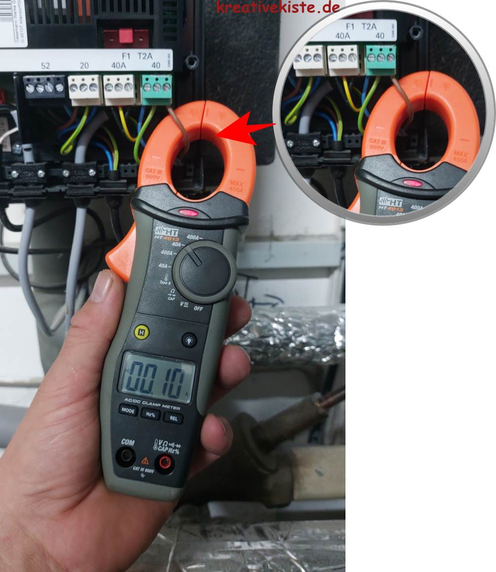 - Werkzeug: Multimeter mit Strommessfunktion oder besser eine Stromzange, auf AC-Spannung und Ampere stellen.