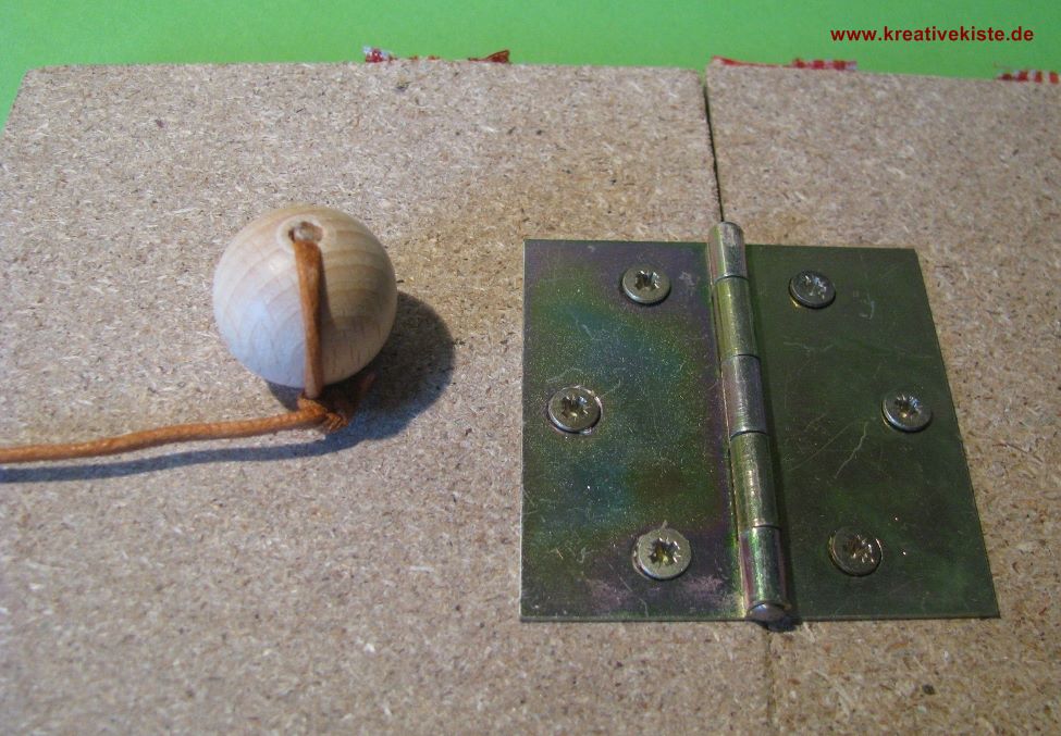 Wem das (zum Beispiel in der Jungschar) zu teuer ist, der kann auch Stoffstreifen als Scharniere verwenden und diese festtackern.