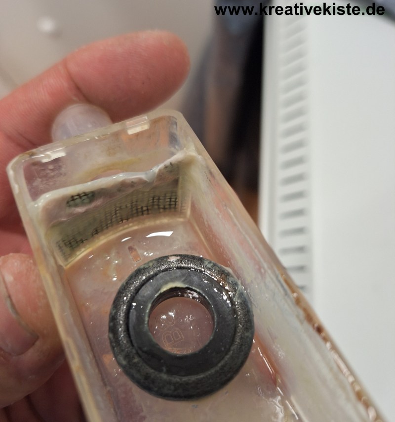 - Nachdem der Reiniger, einige Zeit eingewirkt ist, spüle den Reiniger aus dem Wärmetauscher mit Wasser aus