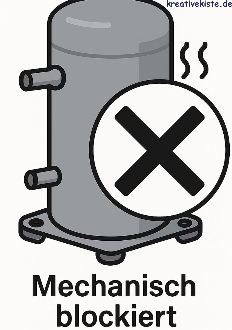 Feststellung: Der Verdichter lässt sich von Hand nicht drehen (bei offenen Systemen) oder zeigt bei Strommessung einen extrem hohen Einschaltstrom ohne Laufgeräusch.