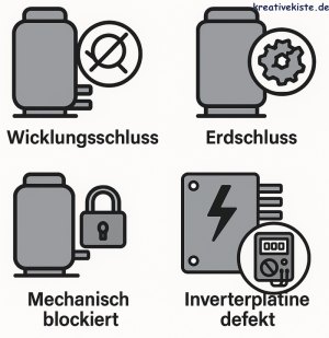 Da der Verdichter mechanisch und elektrisch belastet ist, kann es im Laufe der Zeit oder durch äußere Einflüsse zu Störungen und Defekten kommen. Im Folgenden werden mögliche Ursachen und typische Schadensbilder eines defekten Verdichters beschrieben.