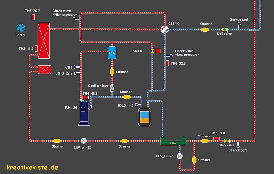 - Wenn du mehr über das 4-Wege- Ventile wissen willst, kannst du hier weiterlesen: https://www.kreativekiste.de/das-4-wege-ventil-in-klimaanlagen-und-waermepumpen