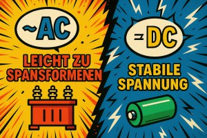 🔋 DC = Direct Current → Gleichstrom